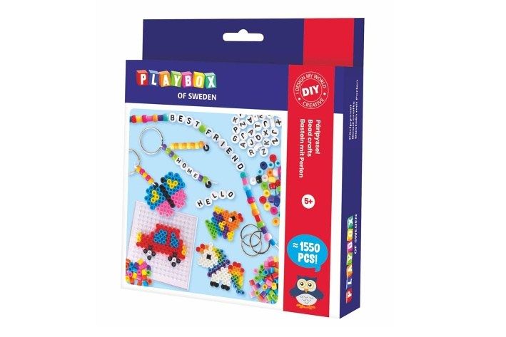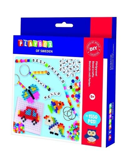 Zažehlovací korálky,náramky, přívěsky 1550ks v krabici 18x21x4cm