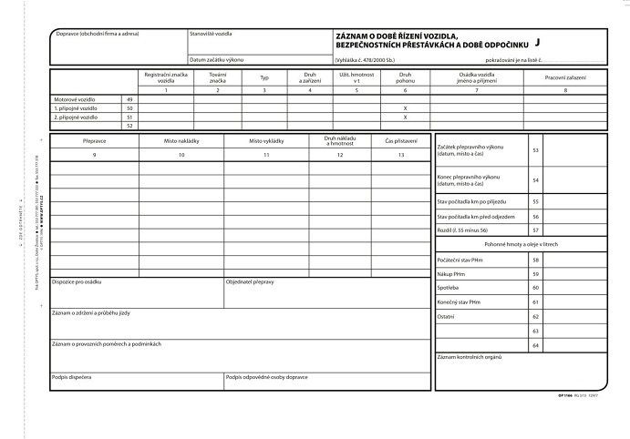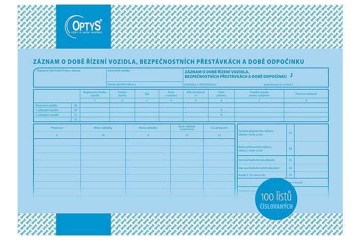 - PAPÍRNICTVÍ / TISKOPISY / DOPRAVA / Záznamy o době řízení vozidla / A4 / OPTYS