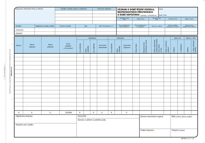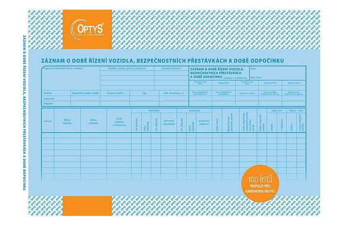 - PAPÍRNICTVÍ / TISKOPISY / DOPRAVA / Záznamy o době řízení vozidla / A4 / OPTYS
