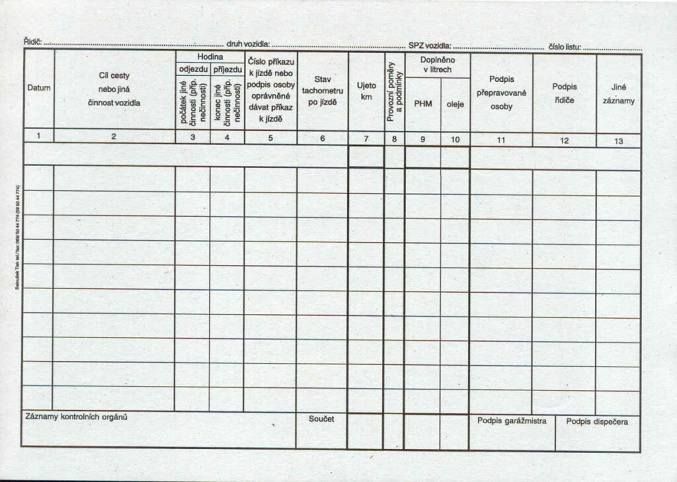Záznam o provozu osob.voz.A5, 50l /ET205/