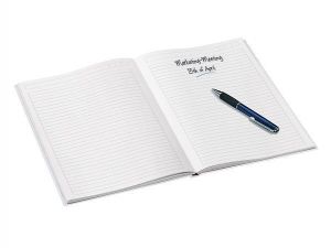 Linkovaný blok na psaní v tvrdých lesklých deskách. Pevné kartonové desky činí z bloku podložku na psaní. Pevná a odolná vazba chrání papíry před vypadnutím.