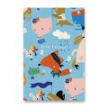 Záznamní kniha Shkolyaryk Blue/White se šitou vazbou. Má tvrdé desky s na dotek jemnou povrchovou úpravou a zaoblené rohy. Papír 70 g, v krémové barvě. Formát A6, 80 listů, čtverečkovaná. Mix motivů.