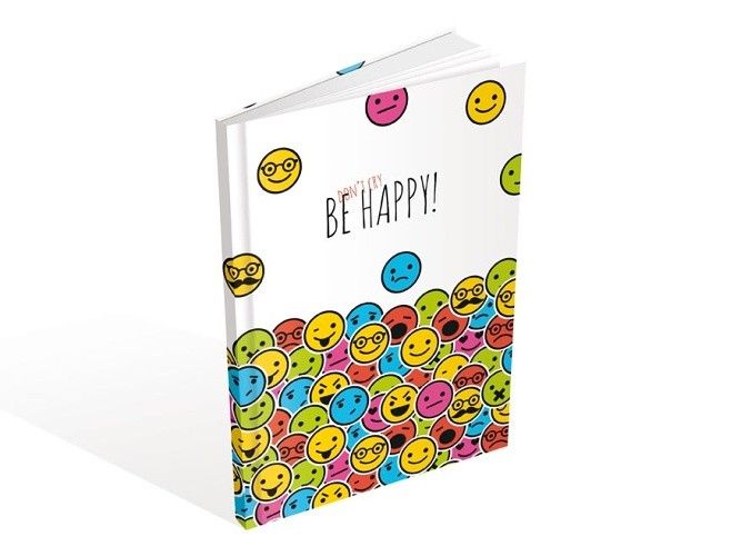 Záznamová kniha MFP - čistá - Potřebujete si zaznamenat důležitou informaci na kus papíru? Máme pro Vás širokou škálu poznámkových bloků, trhacích bloků, záznamových knih, a to dokonce v různých velikostech. Můžete si u nás pořídit také různé popisovače, propisky a zvýrazňovače. Desky jsou z pevného lepeného kartonu s laminem. Tyto bloky jsou opatřeny vazbou V8, která patří mezi nejpropracovanější a nejpevnější vazby. Počet listů: 100 Formát: A4 Motiv: smajlíci + nápis don‚t cry, be happy Uvedená cena je za 1 ks.