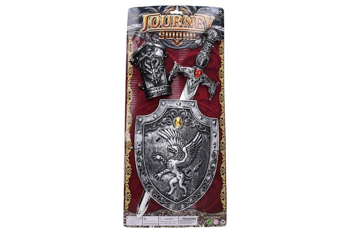 Zbraně stříbrné meč a štít set. Obsah balení - meč 50 cm, štít 27x21 cm, nátepník.