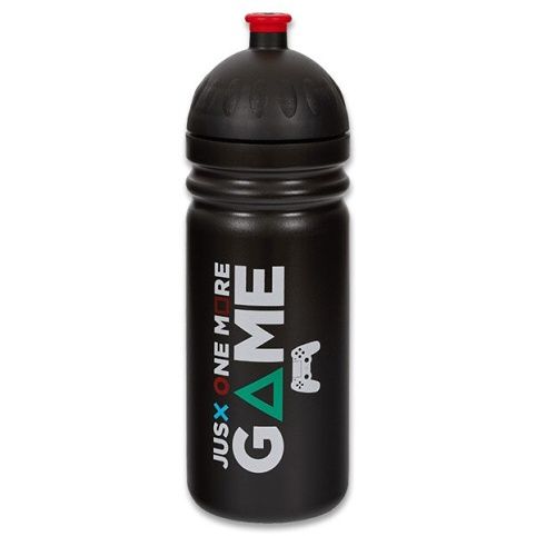 Černá ZDRAVÁ LAHEV s nápisem Just one more game a náhradní zátka. Zdravá lahev je unikátní český výrobek, je vhodná do školy, zaměstnání, pro sport i volný čas. Zdravé lahve jsou vyrobeny z polypropylenu určeného pro lékařské a farmaceutické použití a zabraňují šíření plísní a zápachu, což je nejčastější problém lahví na pití. Objem 0,7 l, výška lahve včetně zátky a pítka 23 cm