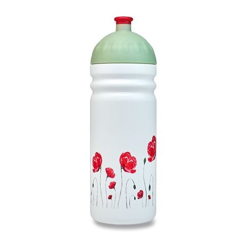 ZDRAVÁ LAHEV s motivem vlčích máků + náhradní zátka. Unikátní český výrobek, do školy, školky, zaměstnání, pro sport i volný čas. ZDRAVÉ LAHVE jsou vyrobeny z polypropylenu určeného pro lékařské a farmaceutické použití a zabraňují šíření plísní a zápachu, což je nejčastější problém lahví na pití. Objem 0,7 l, výška lahve včetně zátky a pítka 23 cm