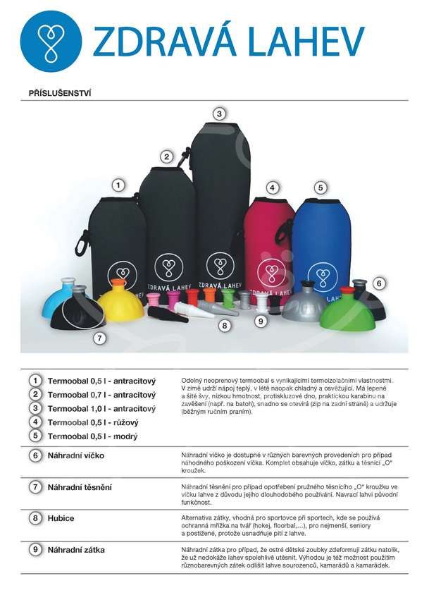 ** Těsnění - dlouhodobé používání Zdravé lahve může vést ke mírnému opotřebení pružného těsnícího "O" kroužku na víčku lahve.