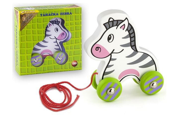 Tahací dřevěná zebra na provázku pro nejmenší děti, pro zpříjemnění jejich prvních krůčků.