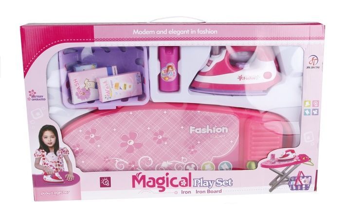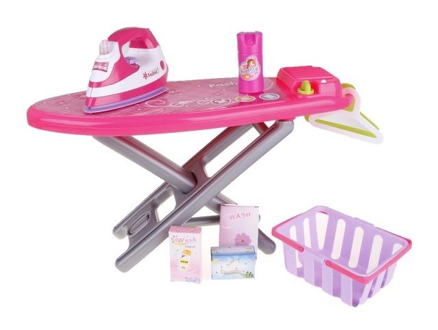 Set obsahuje žehlící prkno, žehličku, košíček a doplňky. Na baterie: 2x AA (nejsou součástí balení)