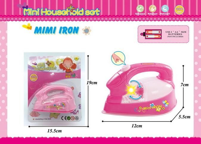 Žehlička. Rozměry 12x5,5x7 cm. Světelné efekty. 2xAA baterie nejsou součástí.