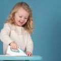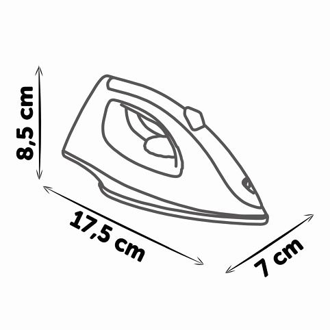 Realistická Smoby žehlička s mechanickým knoflíkem se zvukem "kick-crack". Rozměry produktu (DxŠxV): 17,7 x 7,4 x 8,8 cm.