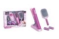 Žehlička na vlasy. Velikost žehličky 19cm. Obsahuje: kulmu, kartáč na vlasy, natáčky, stojánek na kulmu. Zvukové a světlené efekty. 2xAAA baterie nejsou součástí.