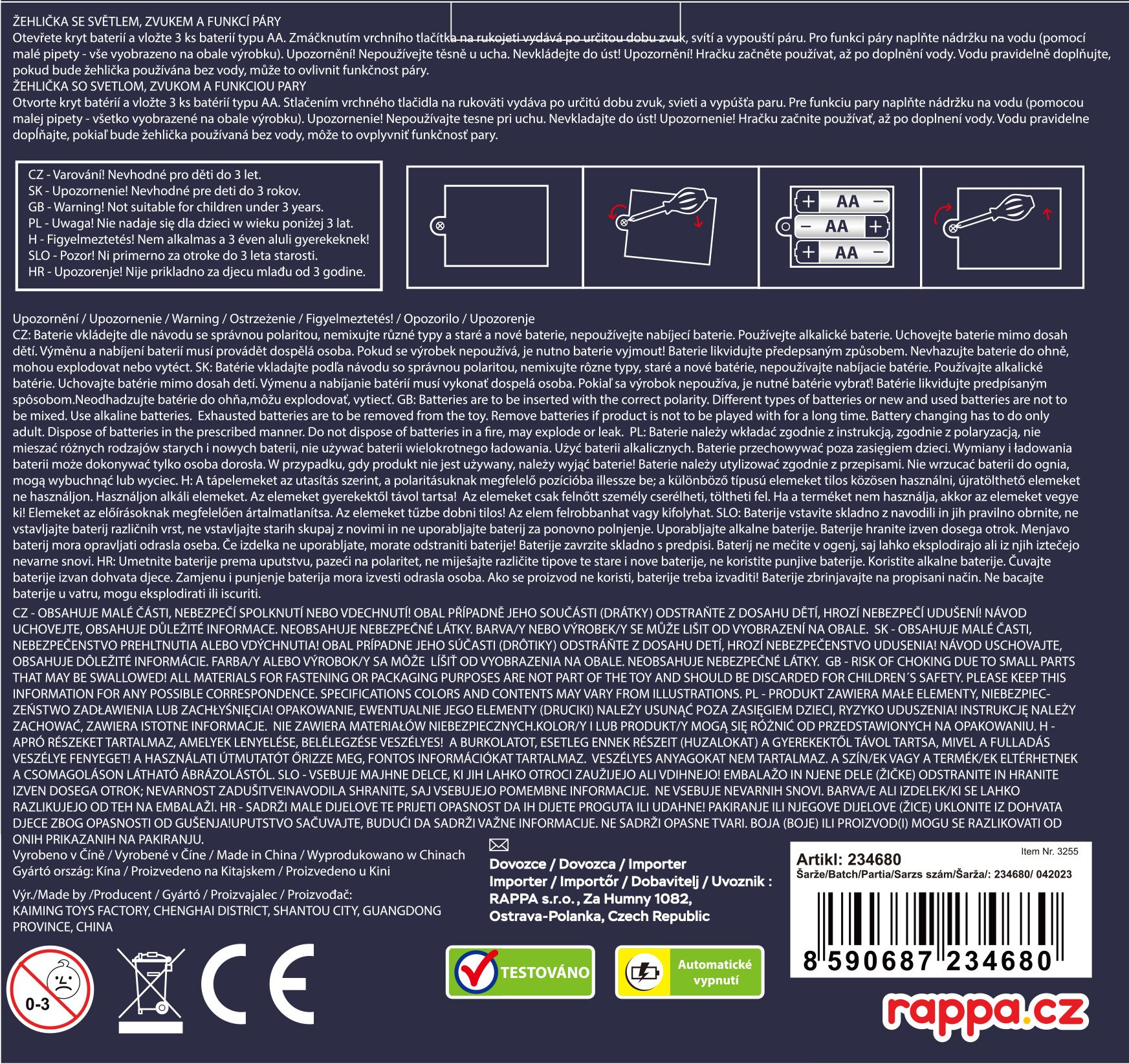 Plastová žehlička bílo-tyrkysové barvy s kterou budeš mít šatičky pro své panenky vždy perfektně vyžehlené! Doplň vodu do žehličky (pomocí láhvičky v balení), při stisknutí tlačítla žehlička vydává zvuk, svítí a vypouští páru. Funguje na 3 ks baterií typu AA, které nejsou součástí balení.