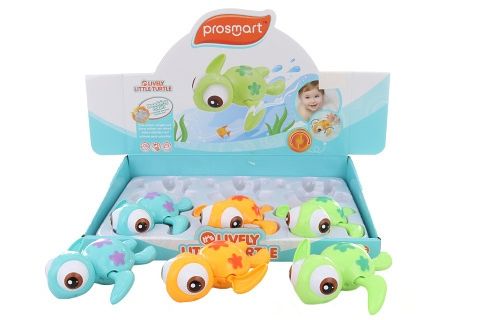 Natahovací želva do vody. Po natežení želva plave a hýbe plouvičkami. Materiál: plast. Rozměry želvy cca 12 x 12 x 5 cm. Věk 2+