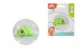 Želvička plave mezi barevnými perličkami v měkké, pružné kouli naplněné vodou. Průměr koule 8 cm.