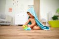 Vkládačka ve tvaru želvy ve vodě plave na hladině, součástí 5 kostiček různých tvarů. Délka želvičky 20 cm.