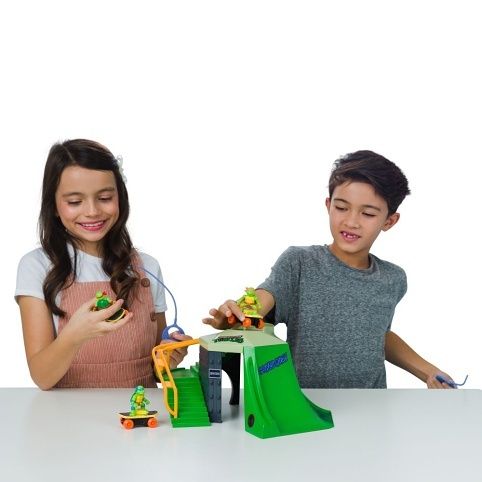 Tento Skate park se schody a zábradlím má vše, co potřebujete k napodobování úžasných skate triků. Hrajte, skákejte a blbněte s Želvy Ninja ve skvělým parku.