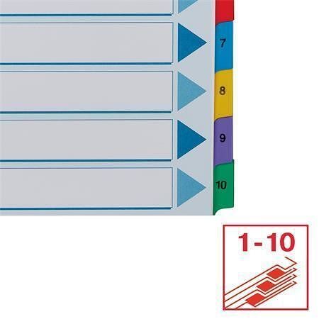 Zesílené rejstříky "Mylar", mix barev, karton, A4, 1-10, ESSELTE
