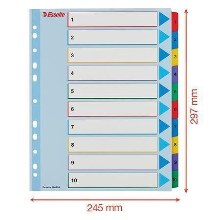 10 barevných dělicích listů se štítky 1-10 pro rychlou orientaci v obsahu