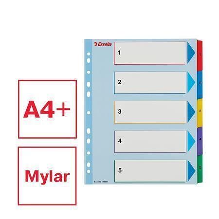 5 barevných dělicích listů se štítky 1-5 pro rychlou orientaci v obsahu