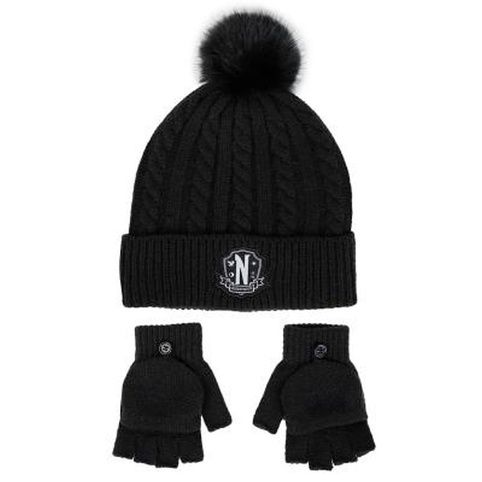 Teploučký zimní set - čepice a rukavice s licencí WEDNESDAY. Vhodné pro děti od 5 do 8 let.