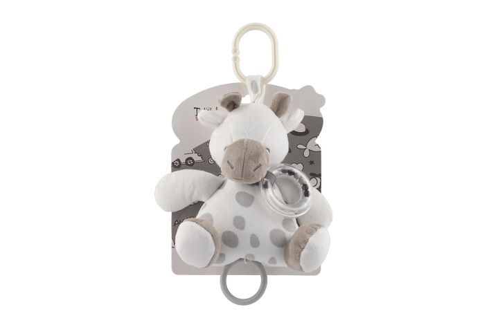 Žirafa natahovací hrací strojek chrastítko plyš 16,5x21,5cm bílo-šedivá na kartě v sáčku 0