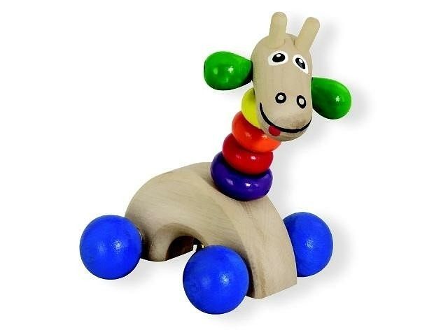 Jezdící žirafa s rolničkou a barevným krkem je vhodná pro děti již od 1 roku. Moc pěkný design. Výrobek splňuje požadavky EU na bezpečnost hraček. Rozměry výrobku 75 × 85 × 110 mm.