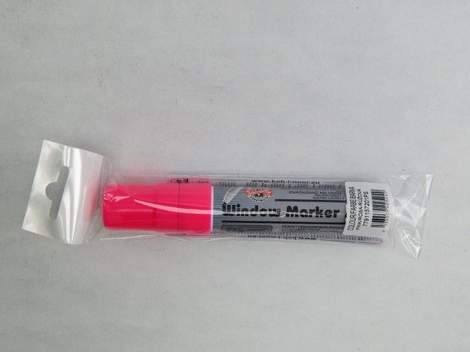 Výrobek se používá jako značkovač na okna s tekutou křídou. Značkovač na okna s tekutou křídou růžový , s růžovým uzávěrem, plochý hrot, šíře stopy 2 - 15 mm. Rozměr délka 161 mm, o 26 mm , uzávěr – šírší konec o 29 mm.