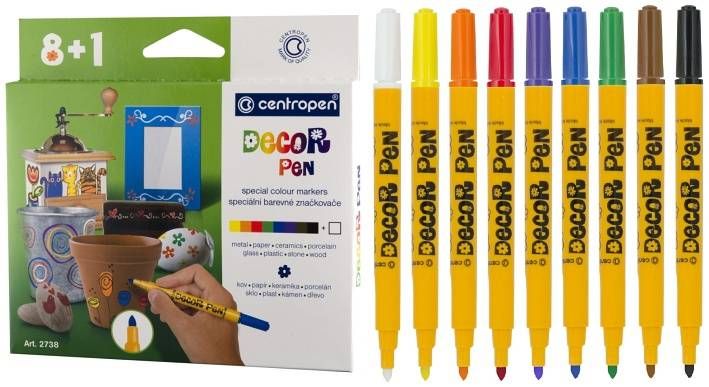 Značkovače DECORPEN na kov,sklo,plast,keramiku,kámen 8+1 ks CENTROPEN