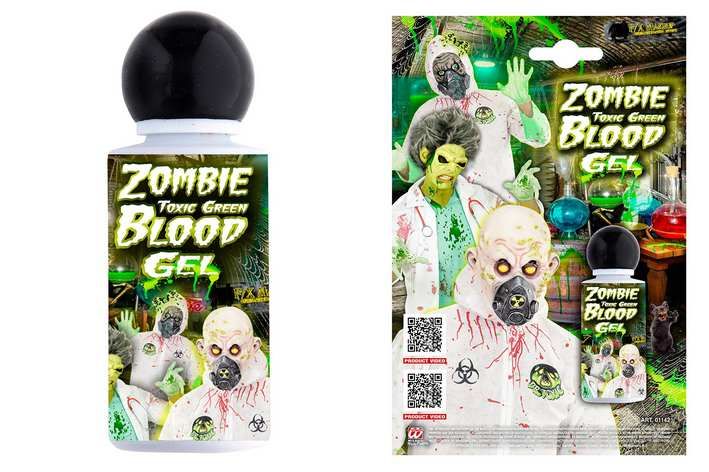 Make-up v podobě zeleného gelu od společnosti Widmann. Po aplikaci zelená krev ztuhne v gel a dále nestíká. Make-up využijete jako doplněk ke karnevalovým kostýmům při příležitosti Halloween oslavy, karnevalu nebo tématické hororové akce.