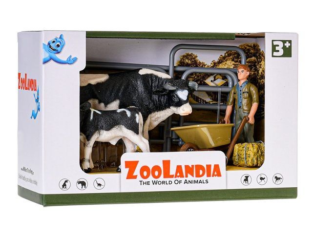 Sestav si svou vlastní farmu s plastovými figurkami z kolekce Zoolandia. Balení obsahuje krávu s telátkem a doplňky. Dostupné jsou 4 druhy - hnědá kráva, hnědý býk, strakatá kráva, strakatý býk. Vhodné pro děti od 3 let.