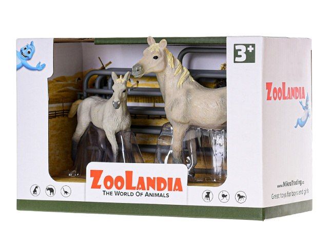 Sestav si svou vlastní farmu s plastovými figurkami z kolekce Zoolandia. Balení obsahuje koně s hříbětem a doplňky. Dostupné jsou 4 druhy - světle hnědý, hnědý, hnědobílý, šedý kůň. Vhodné pro děti od 3 let.