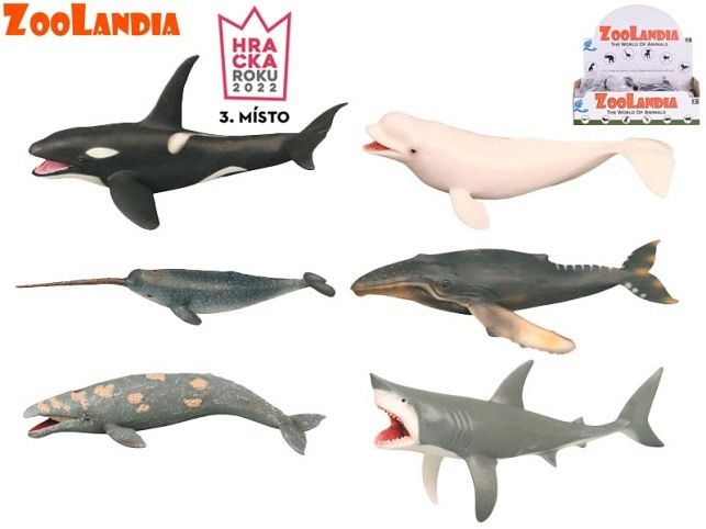 Sestav si své vlastní akvárium s plastovými figurkami z kolekce Zoolandia, ideální na hry plné fantazie. Mořské zvířátko je o velikosti 18-26 cm. Dostupných je 6 druhů - kosatka, plejtvák, narval, bělucha, plejtvákovec šedý, žralok bílý. Vhodné pro děti od 3 let.