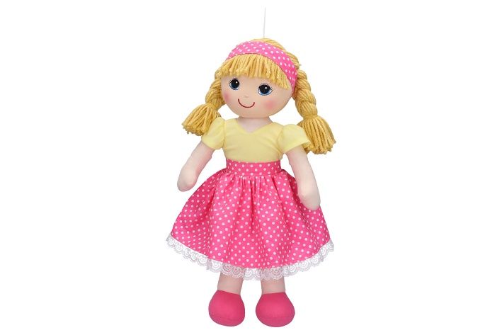 Zpívající panenka látková Míša Růžičková. Velikost 55 cm. 7 písniček. 1x stisk tlačítka na zádech aktivuje písničky, další stisk tlačítka je vypne. 3xAG13 baterie součástí balení.