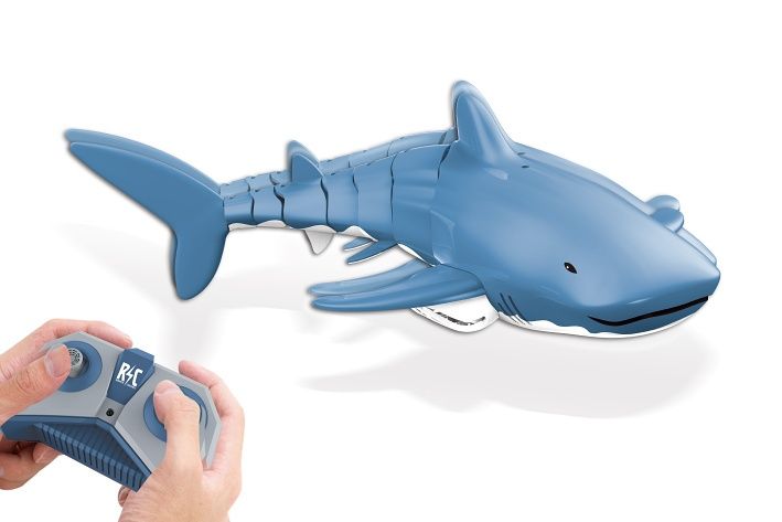 Žralok bílý RC do vody. Velikost 35 cm. Frekvence 2,4 GHz. 1 rotor na každé straně pod předními ploutvemi (celkem 2 rotory). USB nabíječka v balení. Pohyb dopředu a zatáčení do stran