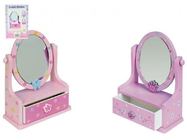 Zrcadlo šperkovnice ovál se zásuvkou dřevo 16,2x24,2x8,5cm