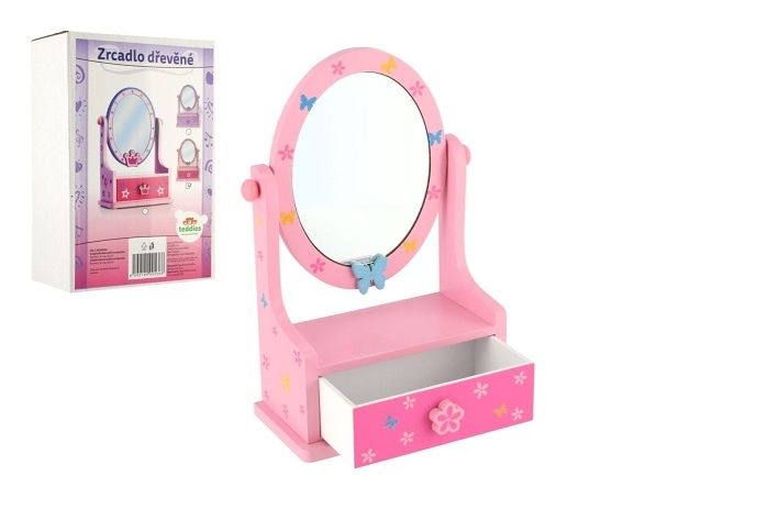 Zrcadlo šperkovnice zásuvka dřevo 16,2x24,2x8,5cm asst 3 barvy v krabici