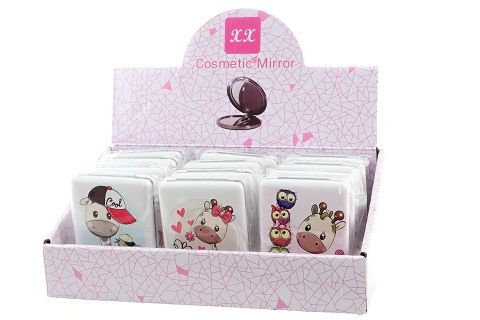 Hranaté zrcátko s motivem veselých žirafek. Rozměry 6x8,5x1,5 cm. Po otevření zrcátko na obou stranách. Baleno v sáčku. Více druhů - dodáváme dle skladové dostupnosti. Výrobek není hračka.