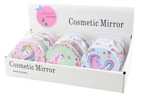 Kulaté zrcátko s motivem jednorožců. Průměr cca 7 cm. Materiál plast. Baleno v sáčku. Více druhů - dodáváme dle skladové dostupnosti. Výrobek není hračka.