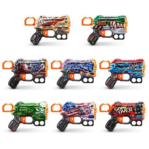 X-SHOT Skinsmenace - Tvoje první bezpečná zbraň a 8 nábojů v sadě. Dostřel až 27 m