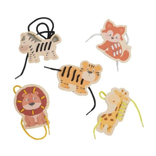 Děti mohou provlékat barevná lanka malými dírkami na každém africkém divokém zvířeti, čímž vytvoří odlišný charakter zvířete a zároveň se naučí klíčové vývojové dovednosti. Fantastické pro koordinaci ruka-oko, jemnou motoriku a obratnost prstů. Varovaní. Nevhodné pro děti mladší 18 měsíců. Dlouhá sňůra/dlouhý řetěz. Nebezpečí uškrcení.