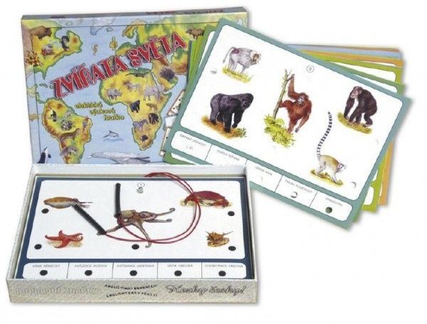 Výuková hračka určená dětem od 6 let. Hračka obsahuje 16 výměnných listů s vyobrazeními 80 nejznámějších zvířat naší planety. Ve spodní části každého listu jsou názvy vyobrazených zvířat a úkolem je přiřadit ke každému obrázku zvířete správný název.