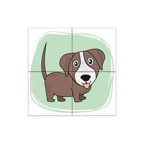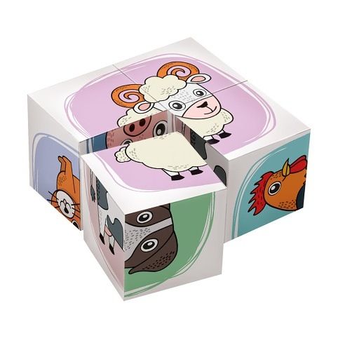 Dětské dřevěné kostičky, ze kterých lze sestavit 6 různých obrázků. Balení obsahuje 4 kostičky. Věk: 3+
