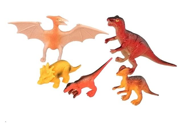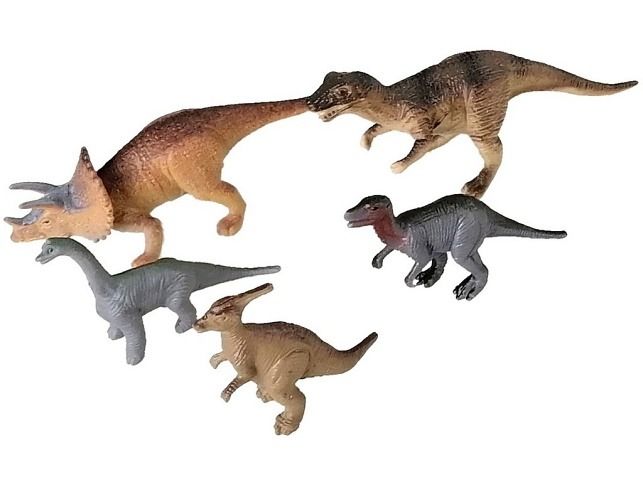 Zvířátka dinosauři, 5 ks, 9 cm. Balení obsahuje pět kusů dinosaurů. Jako základ na vlastní malý ,,jurský park'' asi postačí. Ale co takhle vybudovat celý velký ostrov dinosaurů? Pořiď si více sad, protože dinosaurů není nikdy dost!Hračka je určena pro děti 3+.