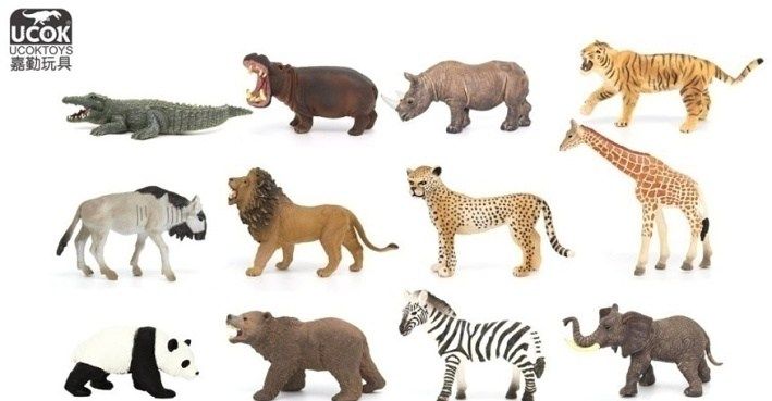 Zvířátka figurky savana. Velikost 13 cm. Display box - 12 ks. 12 variant.
