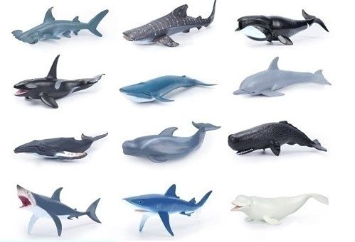 Zvířátka figurky mořský svět. Figurky žraloků, velryb a delfínů. Velikost 20 cm. Display box - 12ks. 12 variant.