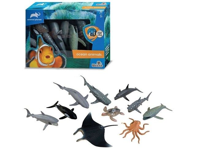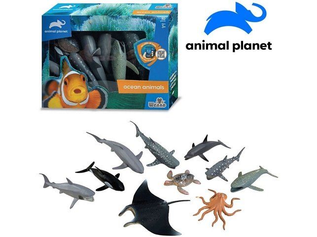 Zvířátka - mořská, 10 ks, mobilní aplikace pro zobrazení zvířátek, 16,2 cm. Jedno balení obsahuje dest kusů rozdílných plastových mořských tvorů. Dokážeš je všechny pojmenovat? Hračka je určena pro děti 3 +. Rozměr hračky je 16,2cm. Materiál hračky je pvc. Balení hračky je window box. Aplikace pro rozšířenou realitu AR ke stažení z QR kódu na boxu produktu. Licence Animal Planet. Vyrobeno z recyklovaných materiálů, barveno inkousty Soy-Based. Eco-Friendly.