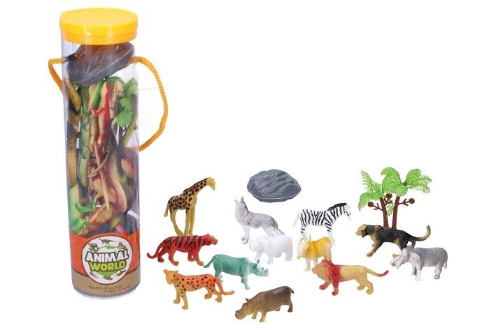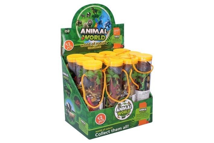 V balení najdeš 12 malých plastových zvířátek s vegetací (stromy) , v praktické plastové tubě.