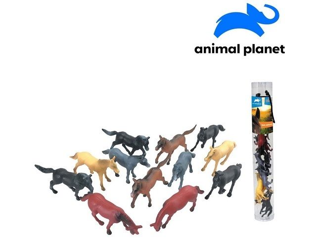 Zvířátka v tubě - koně, 6 - 8 cm, mobilní aplikace pro zobrazení zvířátek, 12 ks. Hračka je určena pro děti 3+. Rozměr hračky je 8cm. Materiál hračky je pvc. Balení hračky je tuba. Aplikace pro rozšířenou realitu AR ke stažení z QR kódu na boxu produktu. Licence Animal Planet. Vyrobeno z recyklovaných materiálů, barveno inkousty Soy-Based. Eco-Friendly.