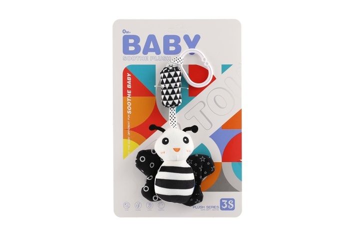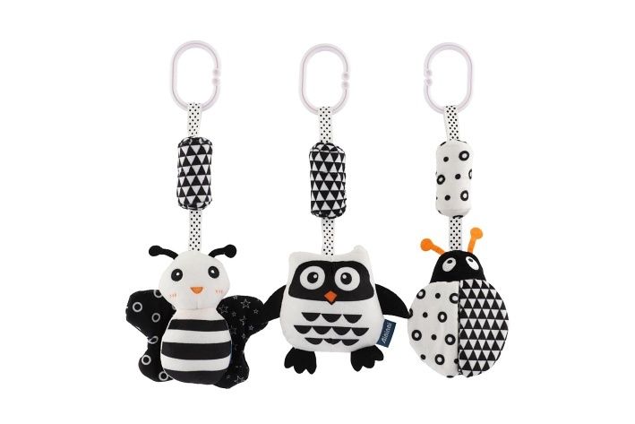 Krásná kontrastní závěsná hračka pro nejmenší ve tvaru zvířátka. Nejmenší přitáhne pozornost k hračce nejen černobílá barva, ale také tvary a odlesky třpytivých částí. Rozměr hračky: 30 cm Vhodné pro děti od narození
